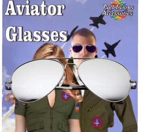 Aviator reflective glasses. A great addition to your Top Gun styled costume.